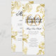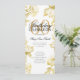 Design de "Programa de Festa de aniversário" elegante com Convênio Floral em Dourado com texto personalizado.