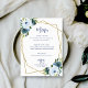 Convites Menu Dusty Blue Dourado Watercolor