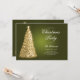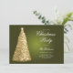 Convite para Festa de Natal Elegante com Programa e Menu que apresentam Árvore de Natal em Dourado.