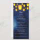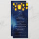Um cheio noturno estrelado de ouro iluminado, lanternas flutuantes define a cena de um belo top-off para uma celebração neste cartão de menu único. Faz uma impressionante impressão na mesa do seu casamento, casamento somente na recepção, janto de ensaio, comemoração de Diwali, aniversário, chá de panela, chá ou festa de aniversário. Disponível com produtos correspondentes.