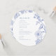 Cartão azul Floral com uma borda de flores desenhadas à mão azul. Personalize com suas informações ou clique em "Clique para personalizar mais" para editar estilos de fonte, tamanho e cores.