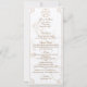 Esse menu de manuseio tradicionalmente elegante apresenta texto personalizável para seu janto de manuseio. O espaço está disponível para um janto de três cursos mais a sobremesa. Um toque maravilhosamente formal para seu aplauso pagão.