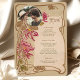 Este menu de janto de casamento de Art Nouveau, inspirado na safra, captura a elegância eterno da era com as suas graciosas ilustrações florais e intrincada design. A frente do cardápio apresenta uma bela mulher adornada com flores, emoldurada por linhas fluentes e tons de terra quente de bege, ouro e blush. Os sotaques delicados roxos e magenta das flores adicionam um toque de cor, enquanto o fundo da safra macia melhora a estética clássica. O lado inverso inclui um emblema minimalista que complementa a arte detalhada da frente. Perfeito para casais que procuram uma única papelaria de casamento inspirada na arte que exude o encanto e a sofisticação do mundo antigo.