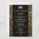Menu Elegante do Janto de Graduação de Quadro Dourado, Personalize o menu do janto de graduação preto e ouro adicionando o nome do formando e os detalhes do menu.