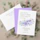 Menu de janto rosa azul roxo e claro para uma recepção de casamento de primavera roxa. O cartão de mesa é versátil para uma lavanda francesa ou tema de casamento lilás. O bouquet de rosas roxas e azuis é um belo olhar botânico para um casamento de jardim ao ar livre.