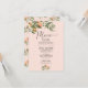 Menu Pequeno Chá de fraldas Cutie de Limpeza Rosa Citrus, menu de chá de fraldas da menina temática com um fundo rosa. Este design apresenta dois citrinos, arranjos florais e folícolas e uma imagem de cabeçalho de fonte de caligrafia que pode ser removida.