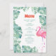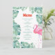 Este cartão cor-de-rosa do menu do ajuste de lugar do comensal do flamingo e das folhas de palmeira é perfeito para um chá de fraldas temático tropical. As características de design meus trabalhos de arte botânicos dos verdes da aguarela original. Pode ser usado para uma recepção de casamento, o jantar de ensaio, o chá de panela, a festa de noivado ou o todo o evento. Para ver a visita de harmonização www.zazzle.com/vginvites da série