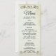 Um cardápio de casamento com um simples design. Colocada numa imagem de papel pergaminho colorido de creme com aspecto de vintage. As bordas molhadas e envelhecidas dão-lhe uma vibração à moda antiga. Divisores decorativos com aparência de vintage rico com seu texto personalizado no meio.
