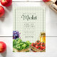Celebre o amor, os recomeços frescos e a noiva com este charmoso Chá de panela de Mercado de Agricultores "Ela está fora do mercado". Com uma vibrante design de aquarela de frutas e legumes frescos de fazenda, este convite traz a beleza viva e rústica do mercado de um agricultor para a sua celebração. A brincalhona frase "Ela está fora do mercado" acrescenta uma reviravolta divertida e moderna, capturando perfeitamente a essência de um chá de panela inspirado na fazenda para a mesa.