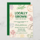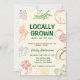 Convite de Chás de Bebê "Cultivado Localmente" - Tema Minimalista de Frutas e Legumes