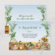 Celebre o amor com charme rústico! Este cartão de acompanhamento para chá de panela de mercado de agricultores apresenta cestas de aquarela com produtos frescos, girassóis, potes de mel e ervas que são perfeitos para um chá com tema de mesa de fazenda ou jardim. É uma escolha única para noivas que adoram estilo orgânico e vibrações do campo. Ótimo para chás de noiva na primavera ou verão, brunchs ou festas na cozinha. O verso revela que tudo foi comprado e a mesa está vazia. Use como cartão informativo, cartão de informações de lista de presentes ou como pedido de receita. Disponível com produtos combinando.