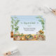 Celebre o amor com charme rústico! Este cartão de acompanhamento para chá de panela de mercado de agricultores apresenta cestas de aquarela com produtos frescos, girassóis, potes de mel e ervas, perfeito para um chá com tema de comida local ou jardim. É uma escolha única para noivas que adoram estilo orgânico e vibrações campestres. Ótimo para chás de noiva na primavera ou verão, brunch ou festas na cozinha. O verso revela que tudo foi comprado e a mesa está vazia. Use como cartão informativo, cartão de informações de presente ou como pedido de receita. Disponível com produtos combinando.
