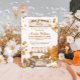 Convide os entes queridos para uma celebração acolhedora com este charmoso convite para chás de fraldas. Este design rústico apresenta uma ilustração encantadora de aquarela de um mercado de fazendeiros cheio de abóboras e decoração automática. Com uma bicicleta vintage e folhas em queda, é a escolha perfeita para um chá de fraldas de outono ou inspirado em colheita, criando uma atmosfera quente e acolhedora para um novo pequeno.