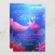 Este convite usa azul e rosa como paleta de cores principal. A profundidade no design é dada atenção fazendo com que os peixes pareçam muito distantes do ponto de vista focal principal. Efeitos de iluminação são usados especialmente na cauda da sereia, para torná-la a estrela do design