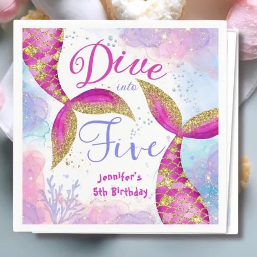 Dive into Five! Girls Pink Mermaid 5h BirthdayCriado por H-Art Studio Design
