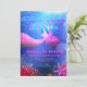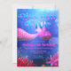 Este convite usa azul e rosa como paleta de cores principal. A profundidade no design é dada atenção fazendo com que os peixes pareçam muito distantes do ponto de vista focal principal. Efeitos de iluminação são usados especialmente na cauda da sereia, para torná-la a estrela do design