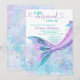 Chamas de chá de bebê de sereia com uma bela cauda de sereia e sob fundo do mar. Este convite para chá de fraldas de sereia é facilmente personalizado com seus detalhes.