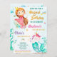 Junte-se a nós para um aniversário mágico! Mermicorn e Princesa convidam princesa para o aniversário e convite unicórnio Convite mágico de aniversário para gêmeos. Convide seus amigos com este convite para o tema mágico de aquarela fofo para garotas! Mermicorn é um híbrido de sereia e unicórnio! Este convite de aniversário real e sob o mar apresenta alegre mermórnio, linda princesa, algumas flores e arco-íris ao redor. Simplesmente edite este menu de personalização fácil de usar modelo para torná-lo especial.