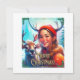 Desenho que retrata uma rena e uma garota felizes pela chegada do Natal! A garota tem um chapéu com chifres de renas e ambos estão em uma paisagem nevada!