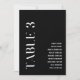 Esta Mesa elegante e personalizável modelo de três preto e branco com uma elegante fonte moderna. Cartões de Mesa de casamento serão um excelente adicional ao decoro da Recepção de casamento. A lista de convidados é totalmente editável, para que você possa mudar facilmente os nomes de convidados, basta clicar em 'Personalizar esta modelo'. As placas de número de tabela de 1 a 12 do mesmo design também estão disponíveis.