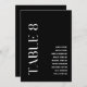 Esta elegante Mesa de oito cores preto e branco, personalizável, com uma fonte moderna elegante. Cartões de Mesa de casamento serão um excelente adicional ao decoro da Recepção de casamento. A lista de convidados é totalmente editável, para que você possa mudar facilmente os nomes de convidados, basta clicar em 'Personalizar esta modelo'. As placas de número de tabela de 1 a 12 do mesmo design também estão disponíveis.