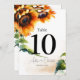 Este número de mesa com tema de girassóis é perfeito para chás de panela, decoração de recepção de casamento, festas no jardim, casamentos no celeiro e muito mais. Ele apresenta lindos girassóis amarelos em um fundo vintage e letras pretas. Cada número de mesa deve ser personalizado e adicionado individualmente ao seu carrinho de compras. Os cartões de número de mesa são de dois lados com espaço para adicionar os nomes da noiva e do noivo. Certifique-se de alterar o texto em ambos os lados. Criado por Victoria na VG Invites. Explore mais deste tema de casamento com girassóis em https://www.zazzle.com/collections/rustic_sunflower_wedding_stationery-119596324960292521