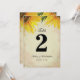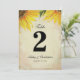 Uma linda decoração de recepção de casamento com girassóis. Números de mesa com um bonito desenho floral amarelo na frente e atrás, perfeito para casamentos em celeiros, casamentos em jardins e temas de casamento com girassóis. Cada número de mesa deve ser personalizado e adicionado individualmente ao seu carrinho de compras. Os cartões de número de mesa são frente e verso. Certifique-se de alterar o texto em ambos os lados. Criado por Victoria da VG Invites. Para ver mais da decoração de recepção de casamento com girassóis de Victoria, visite www.zazzle.com/vginvites
