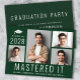 Mestrados modernos fazem um convite para festas de formatura verde apresentando uma colagem de 4 fotos, "Mastered It" escrito em letras grandes brancas e seu ano de aula, nome e escola ou universidade em tipografia simples e branca. No verso, adicione os detalhes da parte formando.