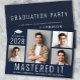 Mestrados modernos anunciam a graduação em azul e convites de festas com 4 fotos, "Mastered It" escrito em letras grandes e brancas e seu ano de aula, nome e escola ou universidade em tipografia simples e branca. No verso, adicione os detalhes da parte formando.