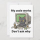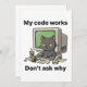 O motivo perfeito para todos os desenvolvedores, programadores e cientistas da computação. Mostra um gato rabugento sentado em frente à tela e apresentando um ditado espirituoso. Uma declaração ideal para programadores humorísticos e relaxados.