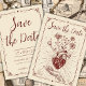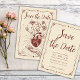 Apresentando nosso Casamento vintage "Meu Coração É Seu" Convite para Salvar a Data. O tema "Meu Coração é Seu" é romântico, com um coração floral oferecido como presente pela mão de um amante. Esse convite é perfeito para casamentos com tema antigo, para entusiastas tartistas, e para aqueles que acreditam em almas e no destino. O design apresenta um esquema simples de sepsia bege com um toque de vermelho de vintage para contraste e ênfase. A redação é perfeitamente editável. Você pode alterar tamanho, cor, fonte, posição na página.