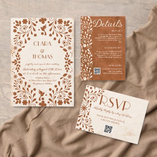 Convites Mexican Fiesta Beige Terracotta Wedding Invitation