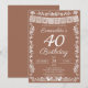 Celebrate a spectacular 40th birthday with this stunning Mexican-inspired party invitation! Featuring a personalized name header, bold "40th Birthday" milestone text, a white papel picado banner, intricate folk art floral border, and two lovebirds at the bottom on a warm terracotta brown background. Written in English, this invitation perfectly blends elegant design with festive Latin-inspired flair.