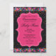 A colorful Mexican Fiesta Floral Folk Art pattern on a black background with a dark pink frame Quinceañera invitation.