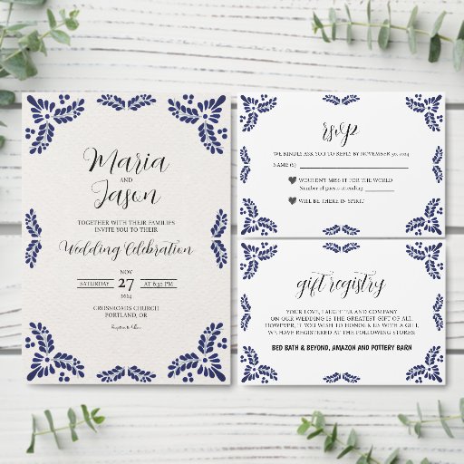 Convites Mexican Talavera Black Floral Minimalist Wedding
