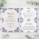 This Mexican Talavera Black Floral Minimalist Wedding Invitation design features a minimalist approach with delicate, symmetrical orange black motifs placed in each corner and along the edges. The small, leaf-like shapes create a sense of movement while maintaining an airy, open space in the center, allowing for ample text placement. The simplicity and elegance of the pattern evoke traditional Talavera tiles, giving the design a classic Mexican artisanal feel.