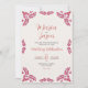 This Mexican Talavera Red Floral Minimalist Wedding Invitation design features a minimalist approach with delicate, symmetrical red floral motifs placed in each corner and along the edges. The small, leaf-like shapes create a sense of movement while maintaining an airy, open space in the center, allowing for ample text placement. The simplicity and elegance of the pattern evoke traditional Talavera tiles, giving the design a classic Mexican artisanal feel.