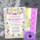 Convite para Quinceañera elegante e bonito para a comemoração de aniversário do 15 da sua filha. Este tema mexicano Quinceañera apresenta flores coloridas de arte folclórica mexicana em vermelho, rosa, roxo e amarelo em fundo branco. A parte de trás do cartão tem a fiesta mexicana, o papel floral picado em roxo mole, amarelo e rosa. O modelo está pronto para você personalizar o cartão com todos os seus detalhes pessoais para o seu doce partido mexicano 15. Procure na nossa loja itens correspondentes e coordenadores.