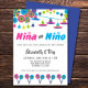 Anuncie o gênero do seu bebê em estilo vibrante com o nosso convite "Fiesta Gender Reveal Niña ou Niño"! Enterrado com cores vivas e padrões brincalhões, este design que atrai a atenção fará com que sua celebração seja realmente memorável. É a escolha perfeita para uma festa reveladora de gênero com tema fiesta.