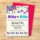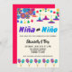 Anuncie o gênero do seu bebê em estilo vibrante com o nosso convite "Fiesta Gender Reveal Niña ou Niño"! Enterrado com cores vivas e padrões brincalhões, este design que atrai a atenção fará com que sua celebração seja realmente memorável. É a escolha perfeita para uma festa reveladora de gênero com tema fiesta.
