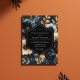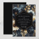 A dramatic and opulent design features deep midnight blue blooms intertwined with accents of creamy ivory and metallic gold foliage. This richly textured artwork evokes a sense of sophisticated romance.