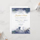 This elegant wedding invitation features deep navy and slate watercolor ink with shimmering gold accents framing the top and bottom, paired with modern typography and a touch of gold script for a luxurious yet contemporary look.