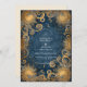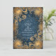 This striking celestial wedding design radiates luxury and mystique with a deep midnight blue background and intricate golden sun motifs. The swirling baroque details and glowing accents create a feeling of cosmic grandeur — perfect for celestial, gothic, or art nouveau-inspired weddings seeking a bold yet timeless look.