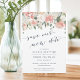 Precisa adiar ou remarcar seu casamento? Estes elegantes anúncios de adiamento de casamento "salve nossa nova data" apresentam uma borda superior de flores e folhagem de primavera suavemente coloridas em cor-de-rosa-pincel, pêssego e aquarela verde-salva.