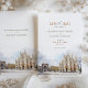 Este elegante cartão salva-vidas mostra uma ilustração, belamente feita em aquarela, da icônica Catedral de Milão Duomo e da Galleria Vittorio Emanuele II. O trabalho de arte captura a grandeza arquitetônica com delicadas sombras de marfim, bege e e azul-céu, evocando o charme da Itália. O design minimalista destaca os detalhes da aquarela, fornecendo um toque sofisticado, porém artístico, perfeito para um casamento de destino em Milão. Com uma tipografia refinada em tons de ouro e terracota, esta carta estabelece a palco de uma celebração italiana romântica. Ideal para casais que planejam um casamento em Milão ou para aqueles que querem trazer um toque de elegância italiana para o seu dia especial.