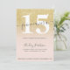 Convite de aniversário de tipografia tipografia de cinecañera, cor-de-ouro amarelo-chic pastel, blush roz, blush, blush, grafite, cor-de-rosa.
