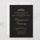 Mínima Elegante Cerimônia de Festas de noivado, Convite Muçulmano Islâmico. Simples cartão de convite a cores pretas com lucia dourada e fontes de script romano romeno robusto escritas na frente. A caligrafia árabe em ouro está acima do texto principal. Moderno. Clássica. A cor desta placa pode ser editada, assim como o tipo de fonte e o estilo, clicando na opção "Personalizar" no lado direito. Os nomes do casal que vai se casar, data, endereço do local onde irão celebrar e o resto das informações pode ser personalizado. Você também pode adicionar texto da placa traseira. Um envelope branco de vazio também está incluído. O tipo de papel pode ser selecionado por você. Sua Linha De Design no Zazzle.