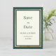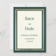 Um elegante marfim moderno, verde florestal e Casamento de luxo minimalista de ouro Salve o convite de Data é perfeito para qualquer cerimônia elegante e sofisticada. Este belo design verde de ouro de glam, deslumbrante e simples, é perfeito para a moda e o casal de na moda ou para qualquer um. Personalize este design com sua própria mensagem e informações personalizadas. Todas as designs são impressas