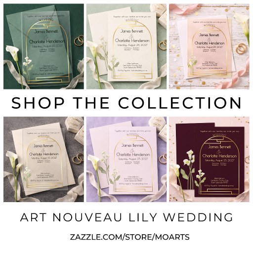 Convites Minimal Art Nouveau Gold Arch Lily Rust Wedding