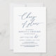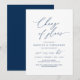 Este é o convite para a festa de casamento remarcado (adiado / adiamento) cartão postal (mudança de planos), em tema de design simples e limpo minimalista moderno, com fonte azul-marinho.